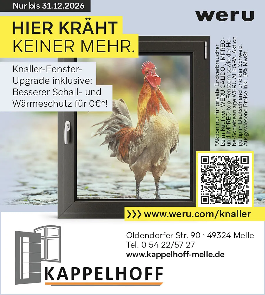 Seit mehr als vier Jahrzehnten steht der Name KAPPELHOFF für höchste Ansprüche in Sachen Fenster und Türen. Als zertifizierter WERU-Fachhändler bieten wir Ihnen nicht nur Produkte auf dem neuesten Stand der Technik, sondern auch ein Rundum-sorglos-Paket aus Beratung, Planung und fachgerechter Montage.